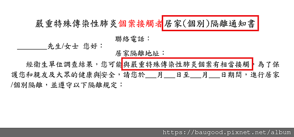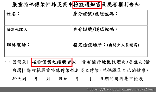 根據條款內容,必須要由政府機關認定應接受以下隔離或檢疫方式,