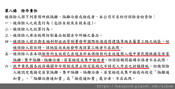 1.前往列為第三級旅遊警示的地區(目前全球都是第三級了),即使回國之後收到入境居家檢疫通知還是不會理賠。